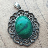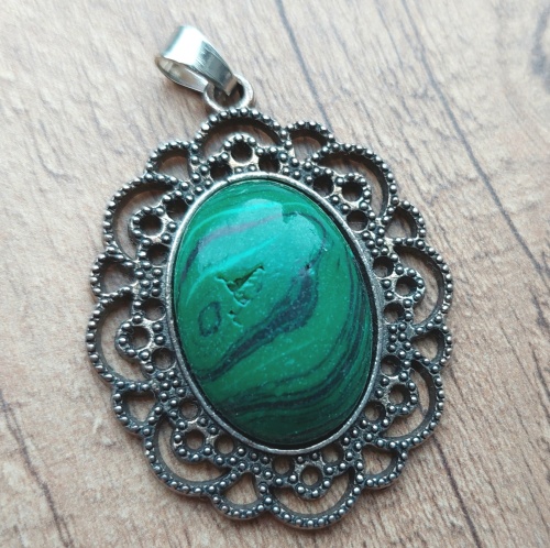 Ovaalvormige hanger, met mooie synthetische malachiet steen.