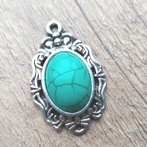 Ovaal gevormd hangertje met steen van synthetisch turquoise.