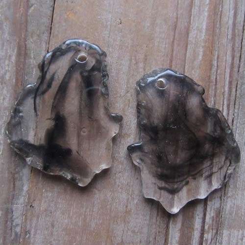 Hanger, licht van gewicht. Leuk voor oorbellen. Transparant, met zwarte vleugjes er doorheen.