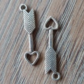 Bedel pijl van CupidoDeze metalen bedel pijl aan beide kanten hetzelfde. Aan het uiteinde zit een open hartje, waardoor het ook als tussenzetsel gebruikt kan worden.