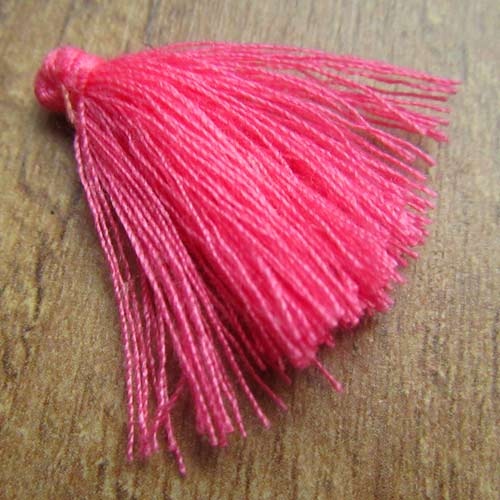 Buig een 6mm ringetje open, doe het voorzichtig door de bovenkant van het kwastje en buig dicht. Daarna kun je het als bedeltje gebruiken.