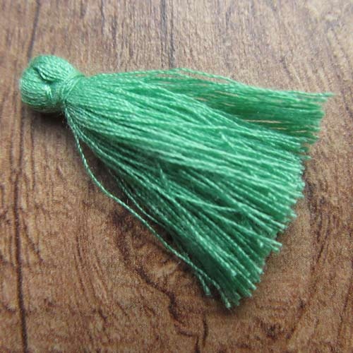 Kwastje om te gebruiken als kleurrijke hanger aan ketting, armband of oorbellen. Buig een 6mm ringetje open, doe het voorzichtig door de bovenkant van het kwastje en buig dicht. Daarna kun je het als bedeltje gebruiken.