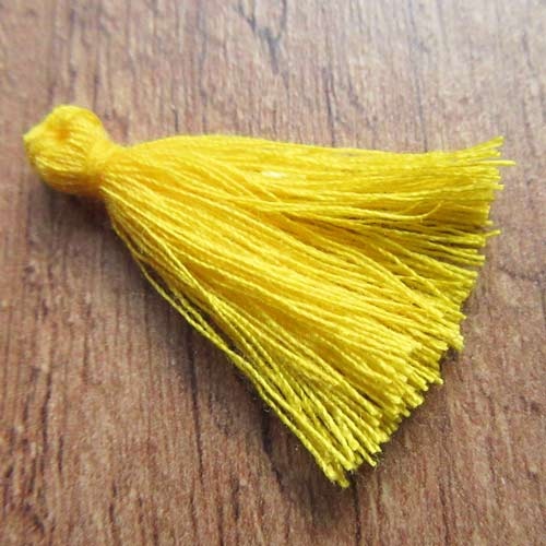 Buig een 6mm ringetje open, doe het voorzichtig door de bovenkant van het kwastje en buig dicht. Daarna kun je het als bedeltje gebruiken.