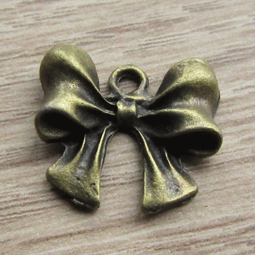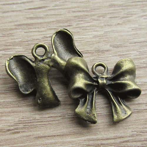 Bedeltje strikje bronsEen strikje, we vinden het speels en schattig. Voor de kaartenmakers onder ons is dit een leuk item om op een kaart te doen. En voor de sieradenmakers: voor een leuk speels effect, ook leuk bij Kawaii stijl. Het hangertje is hol aan de achterkant.