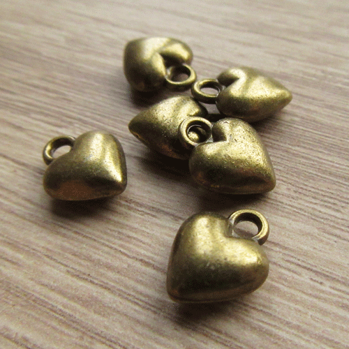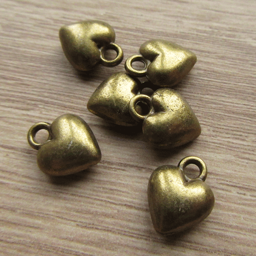 Bol hartje bronskleurigLief klein bolvorming hartje in brons. Een klein bedeltje dat erg leuk is aan oorbellen of een armbandje, maar ook op een wenskaart bijvoorbeeld.