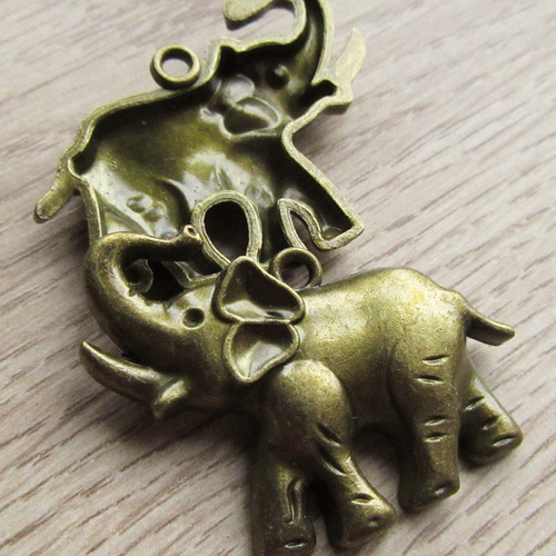 Bedel in de vorm van een olifant. De bedel is aan de achterzijde hol.