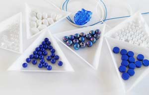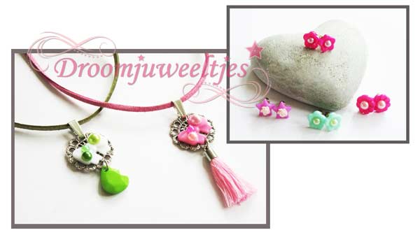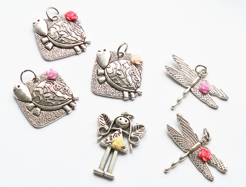 Bedeltjes naar keuze, hier zijn kwastjes gebruikt en kunststof druppels
