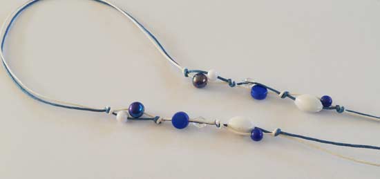 Eigenlijk is de werkwijze van de hangers grotendeels hetzelfde. Kijk goed waar je de cabochons op de knopen wilt plakken. Zorg dat de knoopsgaten niet te zien zijn. Plak de knoop op een ronde metalen basis. Bevestig aan de onderkant een bedel (bijvoorbeeld een kwastje of druppel) aan de metalen basis. Doe aan de bovenkant een bail of ringetje en rijg er een veter door in bijpassende kleur.