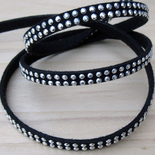 Zwart veterkoord met studsMet lintklemmetjes kun je dit soepele veterkoord gebruiken om armbandjes mee te maken. Ook voor sleutelhangers is dit leuk materiaal.