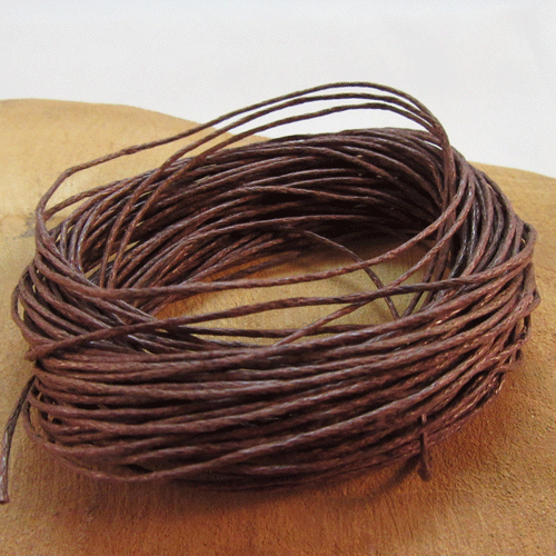 Dit is Chinees waxkoord, het is wat dunner, pluist niet snel maar het is wat stijver. Zeer geschikt voor het fijne werk.