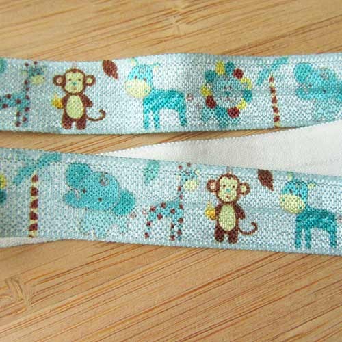 Vrolijk elastisch band met dessin met dieren op petrolblauw band.