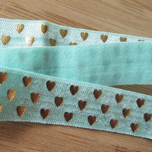 Vrolijk elastisch band met hartjesdessin in goud op effen achtergrond,
