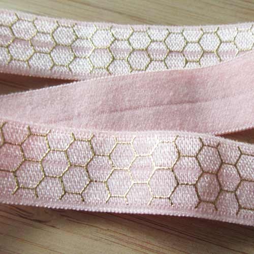 Vrolijk elastisch band met honingraatdessin in goud op effen achtergrond,