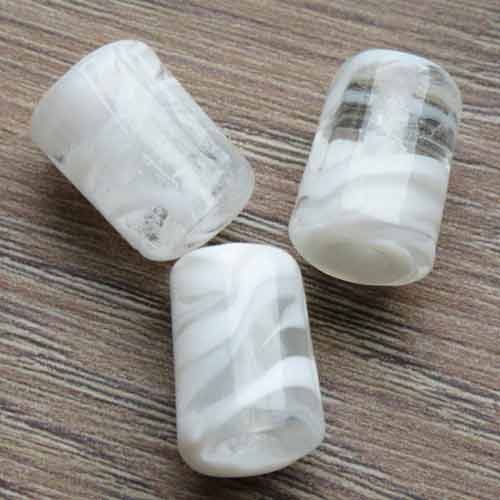 Handgemaakte lampworkkraal wit/transparant met swirl.