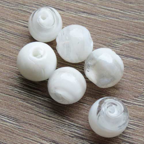 De grote charme van dit soort glaskralen is natuurlijk dat zij door het ambachtelijke proces allemaal uniek zijn. Geen standaard kralen die uit een vormpje rollen, nee, de één heeft een streepje zus en de ander een randje zo.