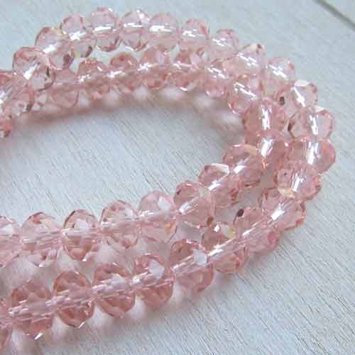 Transparant roze glaskraal op streng, ca. 72 stuks.