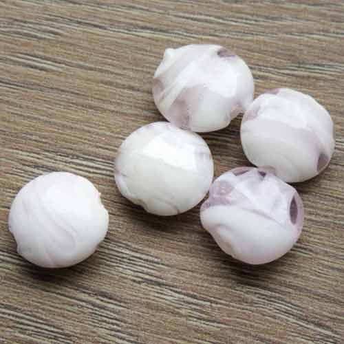 Lampwork kraal in wit-transparant roze swirl, met glans.