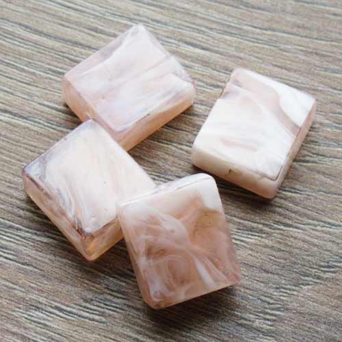 Wit-roze gemèleerde kraal. Rechthoekig model.Kleur neigt een beetje naar zalmroze.