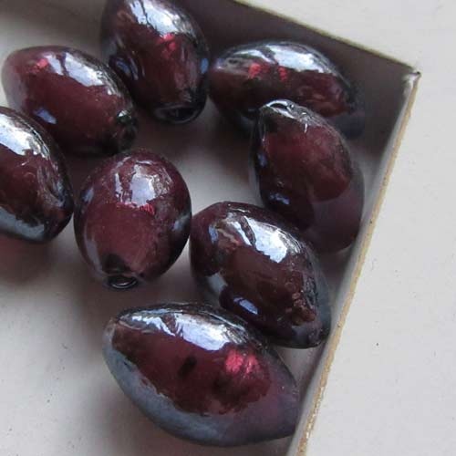 Lampworkkraal met witte kern, stukjes zilverfolie en transparant paars er om heen. Mooie glans.