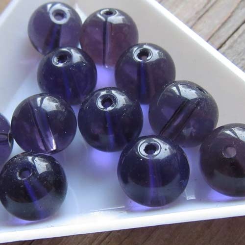 Transparante ronde kraal in diep paars. Handige, neutrale kraal.