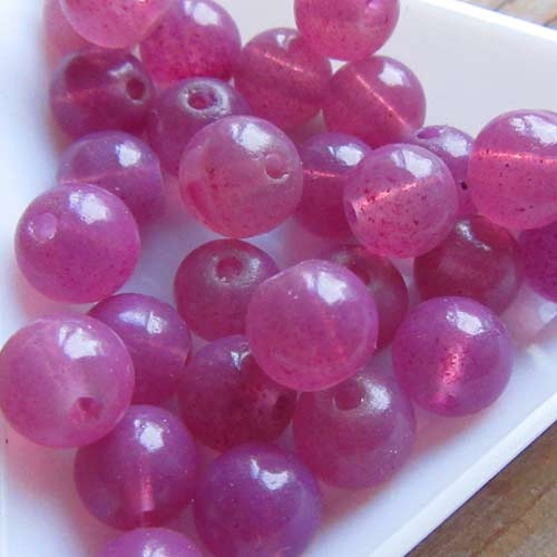 Semi-transparante glaskraal in warm paars. Een beetje gemêleerd is deze kraal. Gewoon een mooie basic kraal, makkelijk te gebruiken.