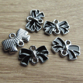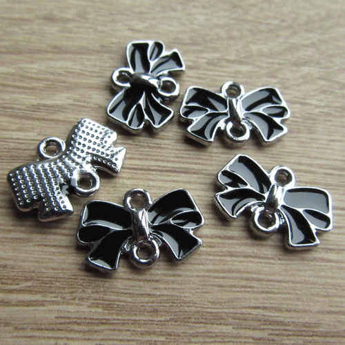 Tussenzetsel strikje zwartMet emaille ingekleurd metalen strikje met bevestigingsoog aan boven- en onderzijde. Hieronder zie je een paar oorbellen ter inspiratie. Wel een ander strikje, maar zoiets kan je er dus mee maken.