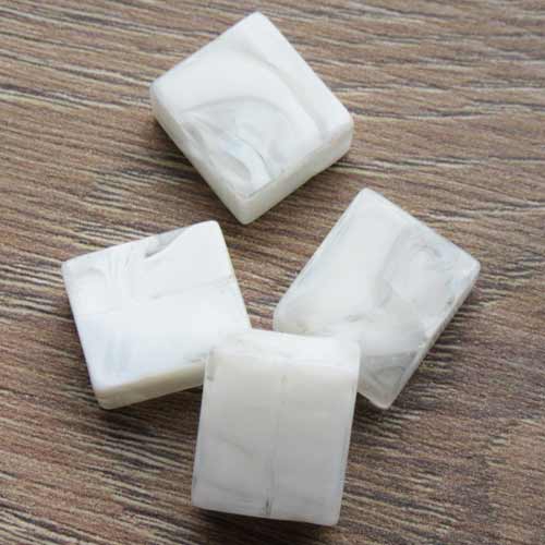 Plat rechthoekige kraal in transparant-wit gemèleerd.