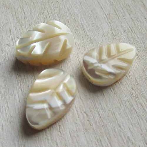 Platte kraal in de vorm van een blaadje. Mooi bewerkt.
