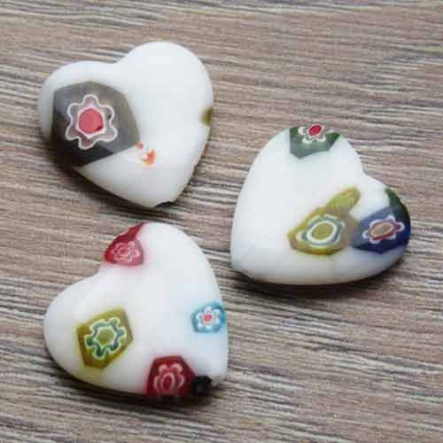 Speelse kraal in basiskleur wit met multicolor bloemmotief. Iedere kraal is anders.