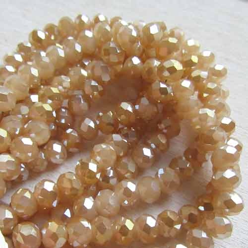 Facet rondellen in beigetint, met glanslaagje. Beetje goudachtig.