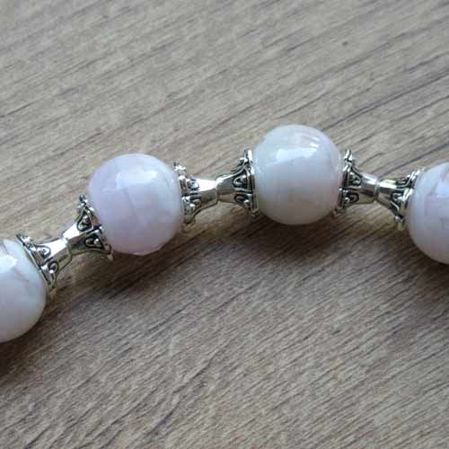 Dit kraalkapje heeft een wat hogere, kelkachtige vorm. Het past goed bij wat grotere kralen, zoals op de voorbeeldfoto waar 12 mm kralen zijn gebruikt.