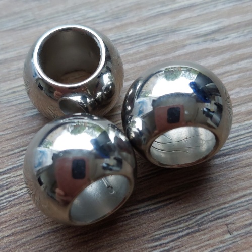 Zilverkleurige groot gat kraal van kunststof. Neutrale kraal, licht van gewicht door het materiaal.