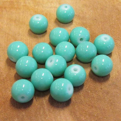 Ronde glaskraal in fris groene tint. Leuk voor sieraden in zomerse sferen! De coating loopt niet helemaal door tot aan het rijggat, daar is een stukje wit. Dit zie je niet als je ze in een armband gebruikt, maar wil je er een ketting mee kettelen, dan kun je aan de kettelstift eerst een kralenkapje rijgen, dan de kraal en dan weer een kralenkapje.
