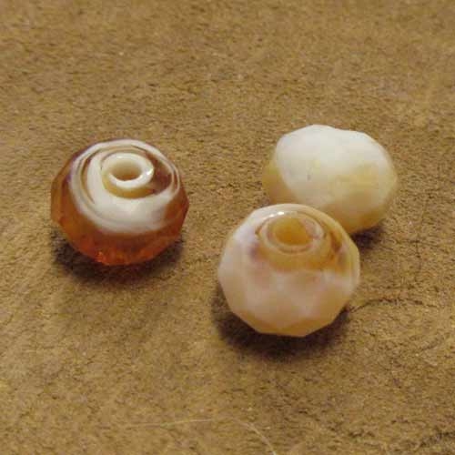 Facet geslepen glaskraal beige wit gemêleerd. Elke kraal is anders.