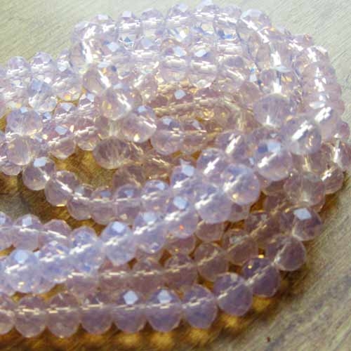 Facet rondelle in semi transparant, beetje melkachtig roze.