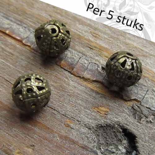 Het leuke van deze filigraankralen is dat ze wel de uitstraling hebben van metaal, maar toch licht van gewicht zijn. De kralen worden gemaakt van een dun laagje metaal en ze zijn dus opengewerkt en hol van binnen.