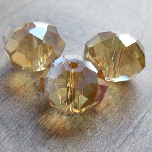 Transparante glaskraal semi rond met facetten en mooie glans. Deze kraal combineert fantastisch met goud!