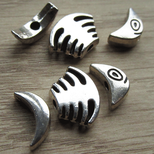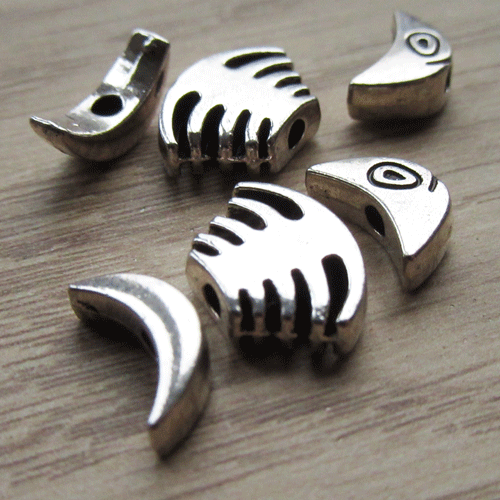 Deze visgraat bestaat uit drie delen: kop, lijf en staart. Wordt natuurlijk per compleet setje geleverd. Tussen de verschillende delen van dit grappige metalen kraaltje kun je bijvoorbeeld een klein glaskraaltje rijgen. Leuk om oorbellen mee te maken!