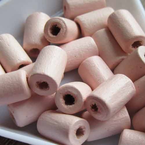 Buisvormige houten kraal rozeLeuk om eens mee af te wisselen, dit houten kraaltje in een vorm die ook wel kokervorm of tonnetje genoemd wordt. Met hun rijggat van ca. 2 mm rijg je deze kralen ook makkelijk op een dunne leerveter of waxkoord.