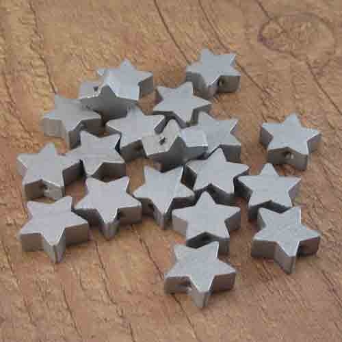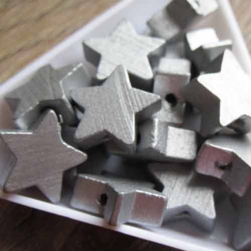 Zilveren kraal hout sterLeuke kraal om te gebruiken in kerstsieraden of decoraties. Ook leuk in speenkettingen. De kraal heeft een wat mat zilverkleurige glans.