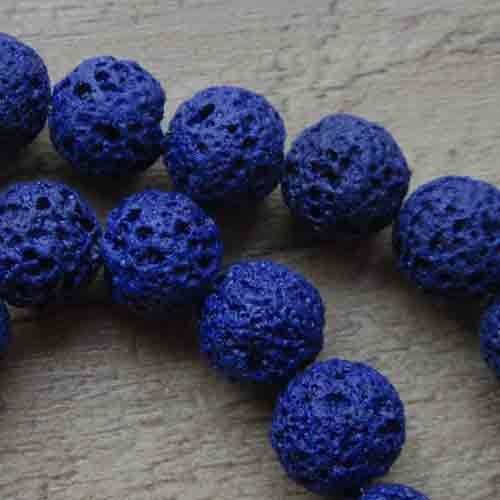 Streng lava kralen donkerblauw 8 mmDe kleur van deze mooie donkerblauwe lava kralen is niet perfect op de foto vast te leggen. Ze zijn iets donkerder dan ze op de foto lijken. Een prachtige diepe kleur. Die samen met de grillige lava uitstraling ervoor zorgt dat dit een leuke kraal is om aan je kralenvoorraad toe te voegen.