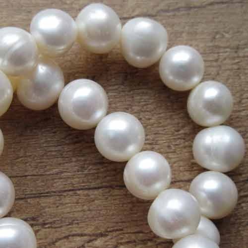 Streng zoetwaterparels 10mm Streng ivoorkleurige parels, net niet helemaal rond van vorm. Met hun mooie mat glanzende look een prachtige kraal om in stijlvolle sieraden te gebruiken.