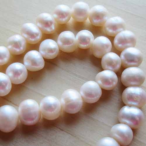 Streng zoetwaterparels 8mm Het blijven altijd lieve en stijlvolle kraaltjes, die zoetwaterpareltjes. Met recht een pareltje onder de kralen! Deze zijn mooi van kwaliteit, niet helemaal rond van vorm.