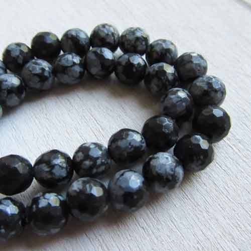 Streng mooie gemèleerde obsidiaan kralen. Facetgeslepen.