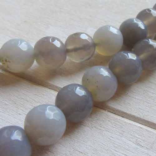 Streng agaat kralen. Melkachtig grijs, facetgeslepen.