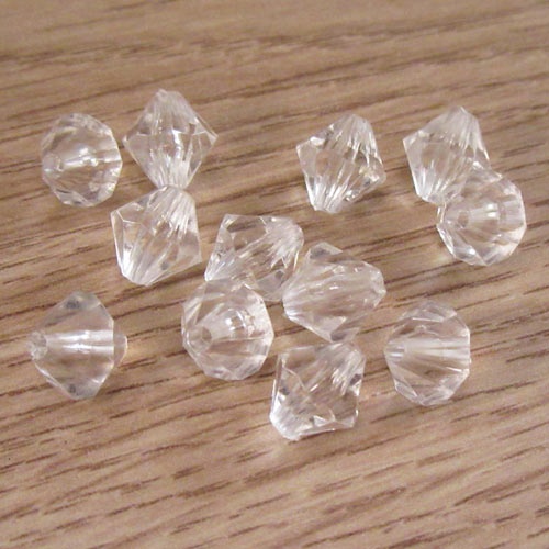 Diamantvormige kraal van kunststof. Transparante uitvoering. Ideaal om te gebruiken als neutrale tussenkraal. Deze vorm doet het leuk tussen allerlei vormen, rond, vierkant, ovaal, dus je kunt er alle kanten mee op!