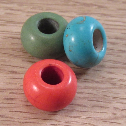 Groot gat kraal roodRondelle, imitatie turquoise. De kraal is glad en er zitten fijne lijntjes op. In diverse kleuren verkrijgbaar.