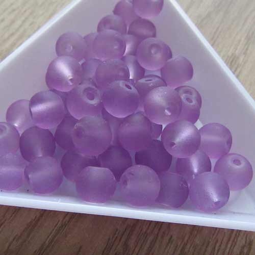 Matte glaskraal paarsMatte kralen hebben toch een heel andere uitstraling dan kralen met glans. Deze kralen zijn 6 mm en leuk te gebruiken in armbandensets.