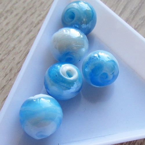 Lampwork glaskraal rond aquaHetzelfde als de ronde kraal uit de 'Hollands blauw' serie. Mooi gemêleerd, mooie glans. Deze lampwork kralen zijn handgemaakt, en dus allemaal uniek.