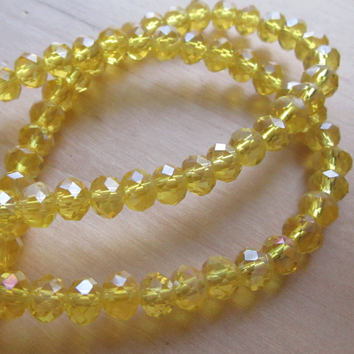 Doorzichtig gele facet rondellen op streng, met glanslaag